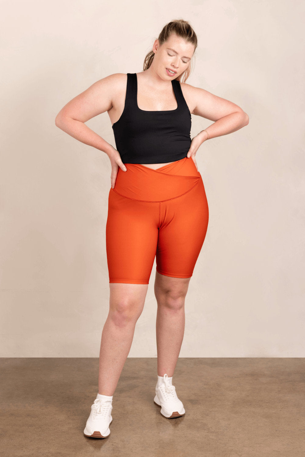 On the move, on the go! Take these biker shorts as your new everyday companion. Its compression fabric is both soft and stretchy; ideal for any activity. Featuring a V-shaped waistband for a flattering fit, and a hidden back pocket, they’re perfect for being on the go in style.