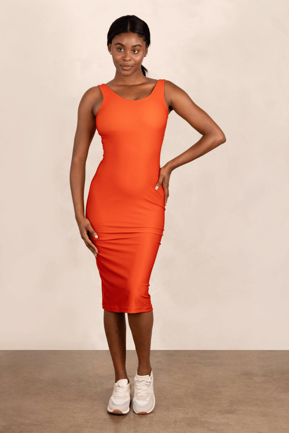 Jet Set Bodycon Mid Dress is flattering, versatile, and everywhere-ready. Its figure-hugging midi length and classic silhouette make it a closet must-have. The soft fabric feels smooth and sleek on your skin, and easily goes from day (if worn from the front) to night (if worn from the back), from casual to dressy.